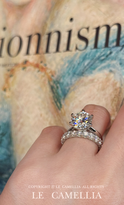 최상급의 모이사나이트 큐빅이 빛 위로 미묘한 층을 이루며 반짝임이 극대화 되는 디자인 입니다.