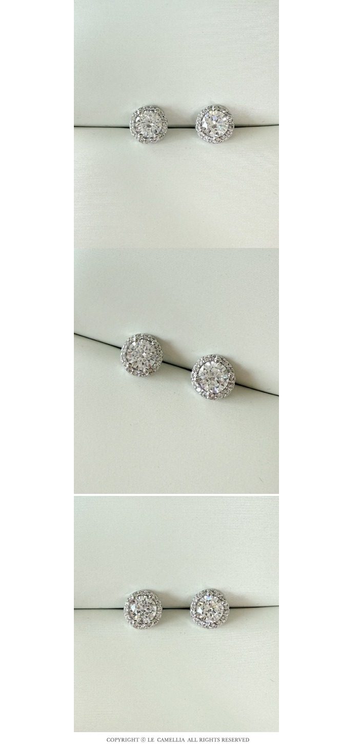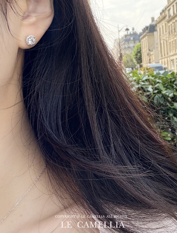 입체적인 볼륨감이 있는 디자인으로 일반 캐럿 이어링 처럼 사이즈가 커보이는 효과가 있으며 중심의 캐럿이 훨씬 커 보이며, 풍성한 반짝임을 연출할 수 있습니다.